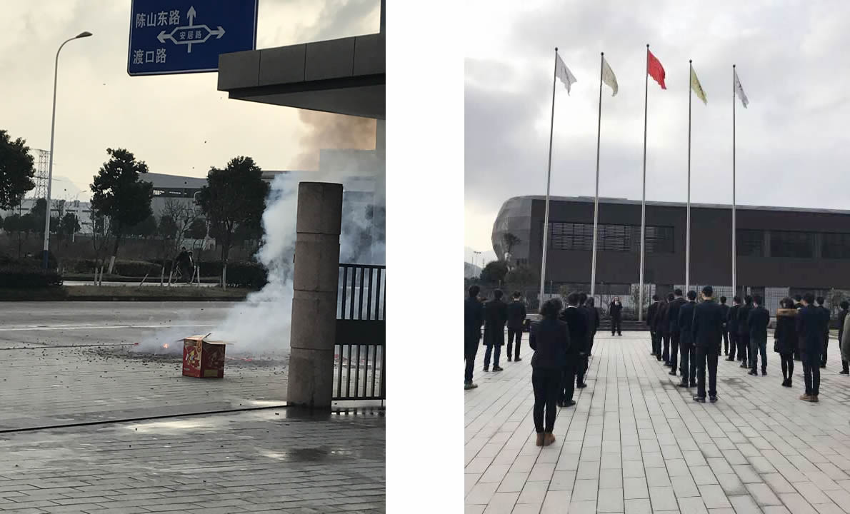 升旗仪式上,戴总发表讲话,展望了18年的工作,肯定了全体员工的精神面貌。相信大家会带着这一腔热情,在今后的工作中投入更多的心血,迎接新一年的挑战。